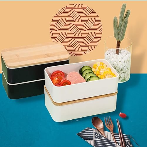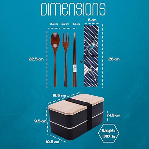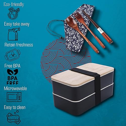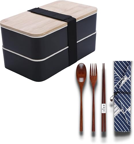 BENTO BOX Lunch box bento & set de couverts en bois japonais micro-ondable & lave vaisselle conserve fraîcheur pique nique lunch box pour enfant et adulte zéro déchet écologie Blanc et Noir BB1