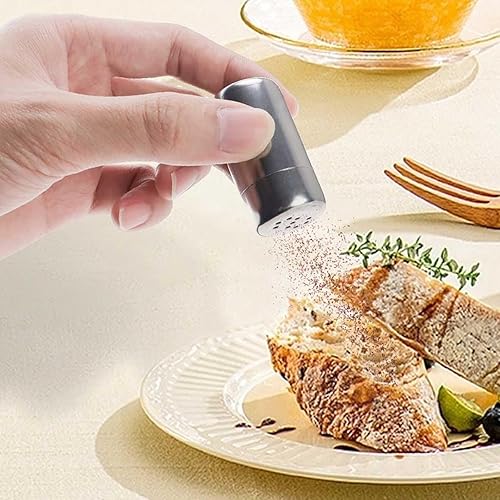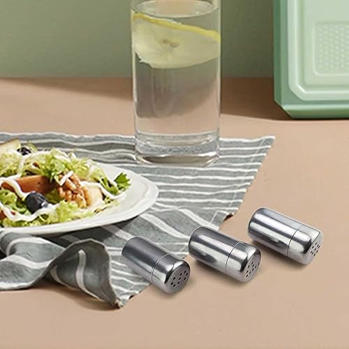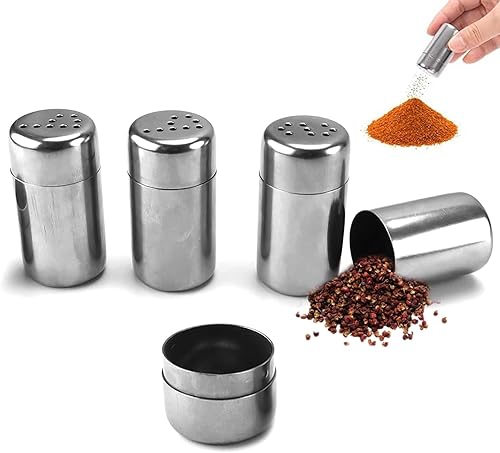 WJUAN 4 Pièces Mini Salière, Argent, Acier Inoxydable, Mini Poivrière, Ouverture en Maille de Type P et De Type S, Léger et Portable, Salière et Poivrière, pour Maison, L'hôtel, Camping