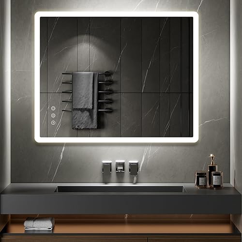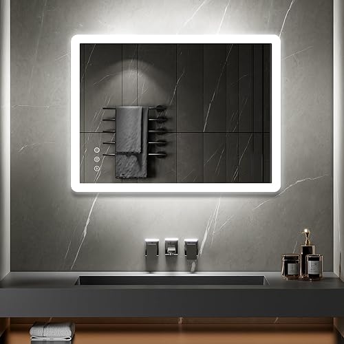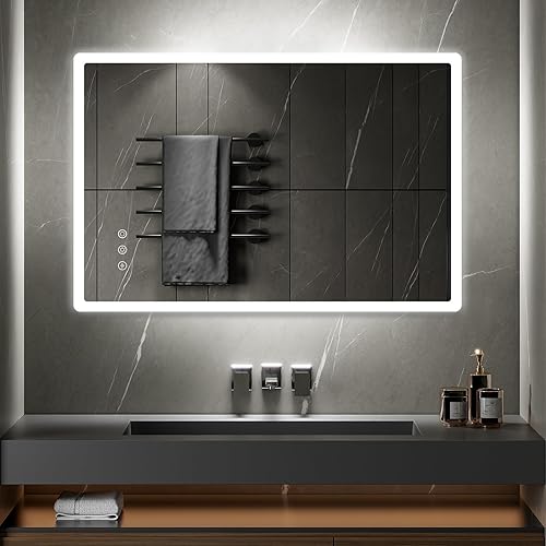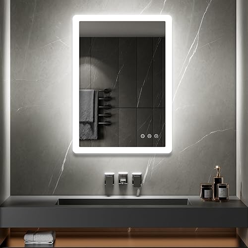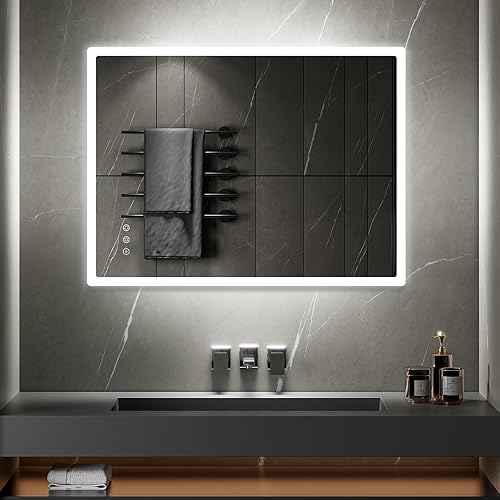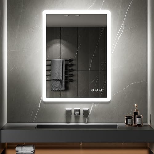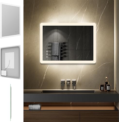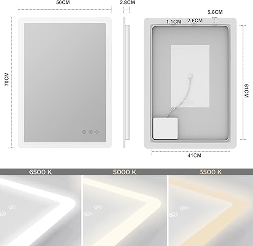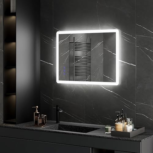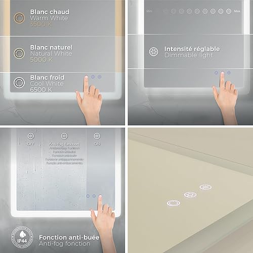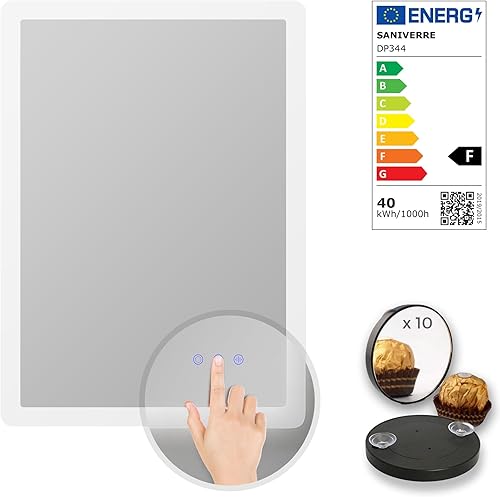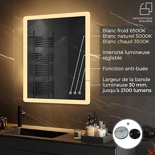 SANIVERRE BOLEO Miroir LED Lumineux 50 x 70 cm réversible (2100 LMS) Fonctions tactiles : intensité & Couleur réglables + antibuée - Miroir Salle de Bain