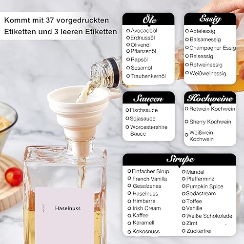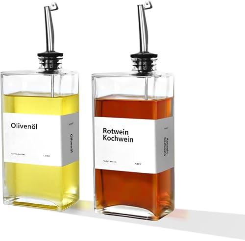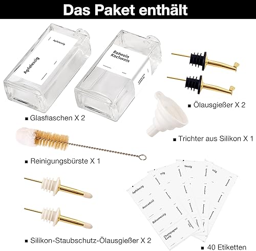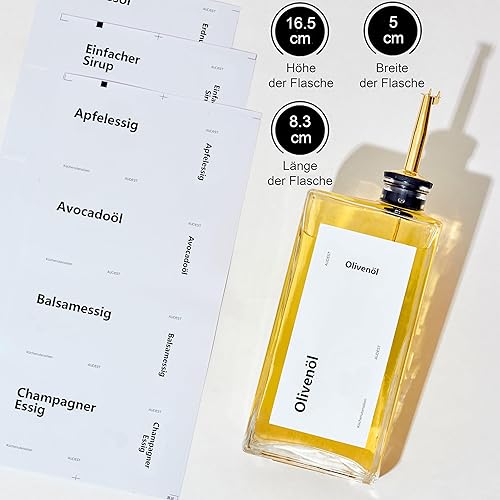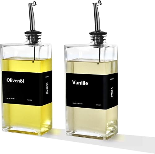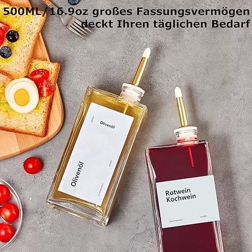 Audest Bouteille d'huile avec 400 ml de bouteille d'huile d'olive à 500 ml, distributeur d'huile avec 40 autocollants, brosse à nettoyage, entonnoir