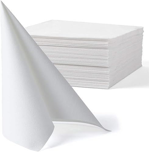 MORGIANA Noir Serviettes en papier, Airlaid serviette jetable | Parfaite déco de Table Anniversaire, Serviette Papier Mariage, dîner, BBQ | 40 x 40cm | Pack de 50 (Blanc-100)