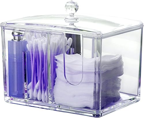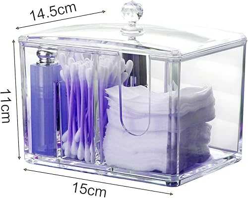 Koomuao Organiseur de Maquillage, Multifonction Supports de Maquillage en Acrylique Transparent pour Boules de coton, Coton-tige pour Salle de Bain 15 x 11 cm