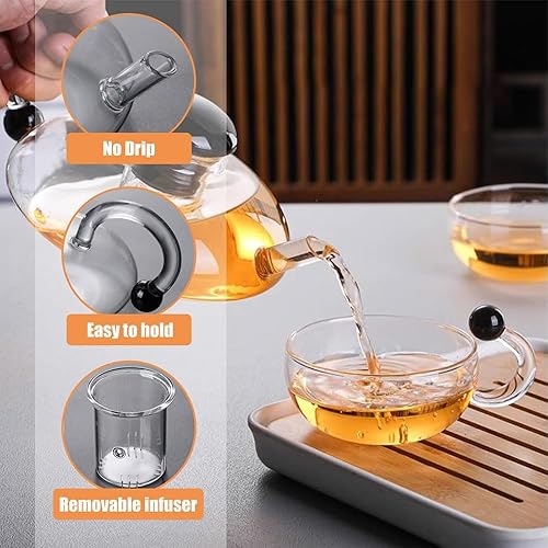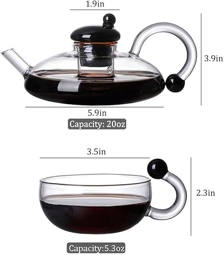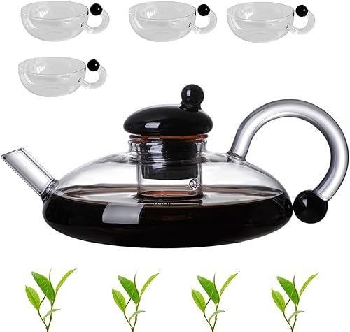 Ensemble de théière à filtration, ensemble de théière Innovessa, ensemble chauffant amovible avec infuseurs (Black)