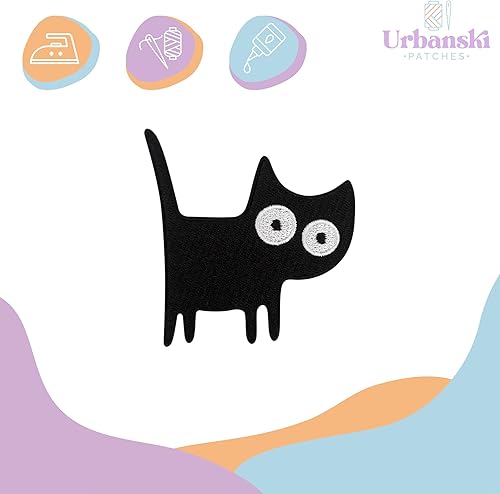 Urbanski Patch Chat Noir avec la Queue Relevée à thermocoller sur 7 x 6,5 cm | Écusson Thermocollant, Transferts Thermocollant, Appliqués à coudre