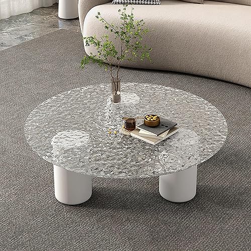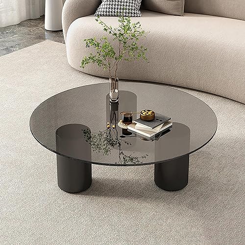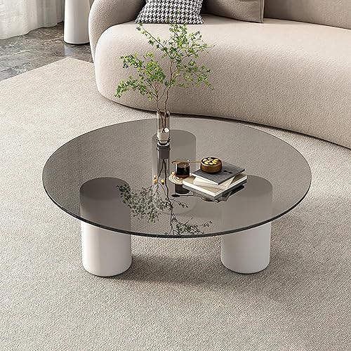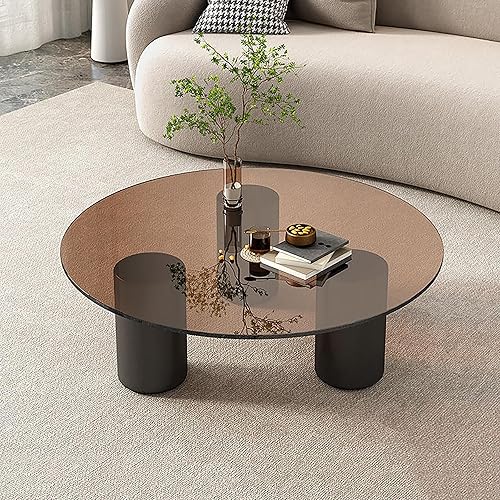 RYZQWE Table de Salon Ronde, Table Basse de Salon Effet Verre Rond Table de Canapé Table a Café Verre et Métal Piédestal Table d'Appoint Nordique Scandinave 90x31cm (Color : A, Size : 31.5x12.2in)