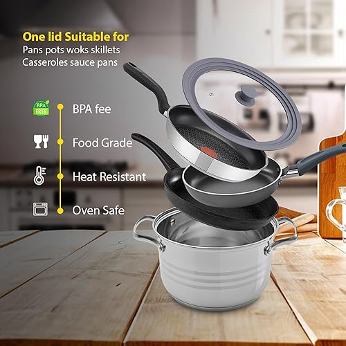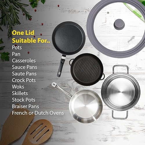 INTIGNIS Couvercle de casserole en verre multi-tailles – Ajustement parfait pour les poêles de 28 cm, 30 cm et 32 cm, solution idéale pour économiser de l'espace pour votre cuisine, casserole,