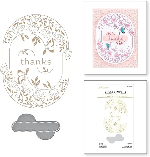 Spellbinders Motif Plaque et Matrice élégantes avec Inscription « Thanks Glimmer » de la Collection « Stylish Ovals », métal, Un
