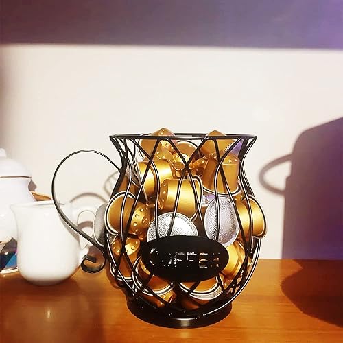 Panier à Capsules De Café, Organisateur Dosettes Café, Panier Rangement de Café, Corbeille Fruits Tasse à Café, Porte-Capsules De Café Design Original, Porte-Tasses K, Grande Capacité, Noir (B)