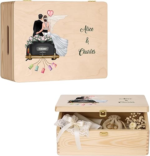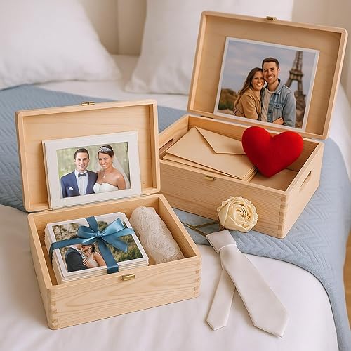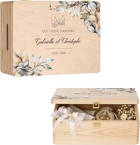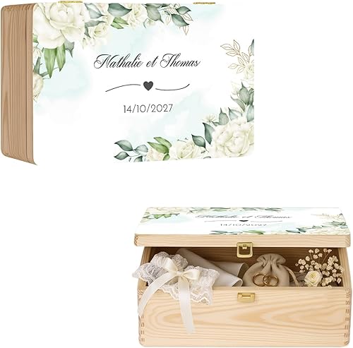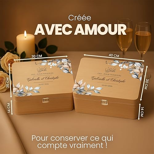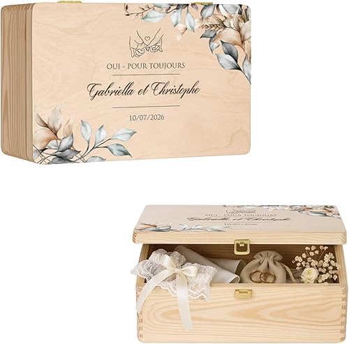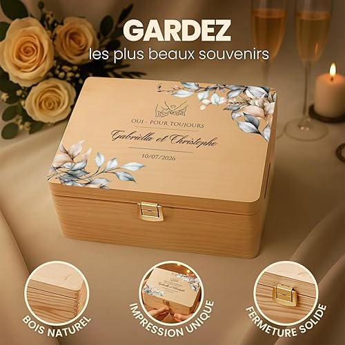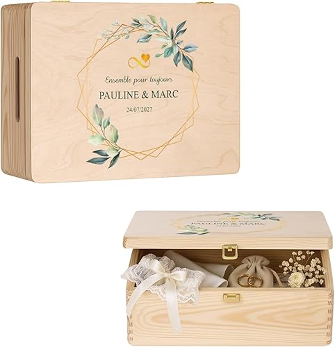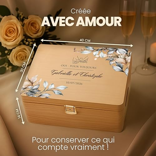 Maverton Boite a Souvenir Personnalisable - Cadeau Personnalisé pour couple - L/XL Boite de Rangement avec Couvercle en Bois de Pin Naturel - Cadeau Mariage Anniversaire Amoureux