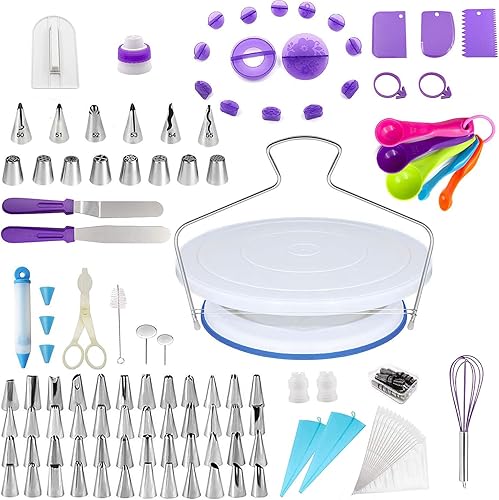 Plateau Tournant Patisserie 11 inch, 137 Pcs Kit Patisserie Inclure Plateau Tournant Gateaux, Couteau à GâTeau Et Autre Accessoires De Gateau, Kit Gateau Patisserie Debutants Et Professionnels