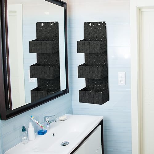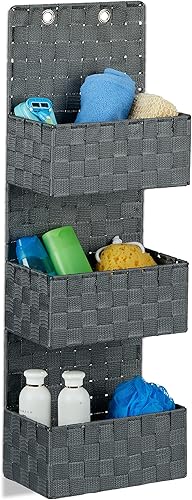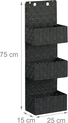 Relaxdays Organiseur de porte tissu à suspendre rangement mural à accrocher 3 compartiments HxlxP: 75x25x15 cm, blanc