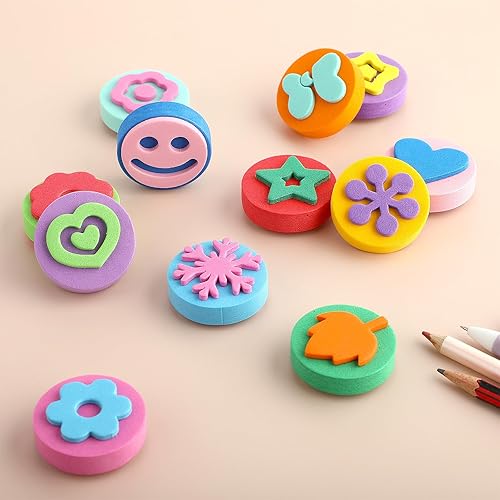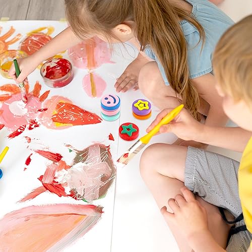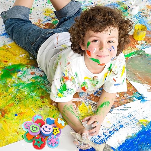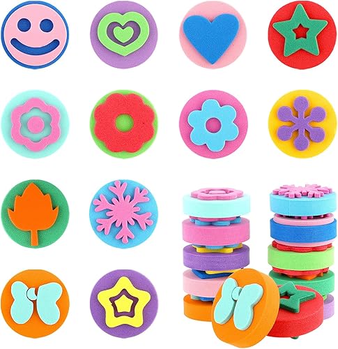 Prasacco Lot de 12 éponges de peinture en mousse double face pour enfants, tout-petits, apprentissage précoce et travaux manuels (motifs assortis)