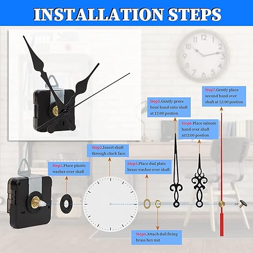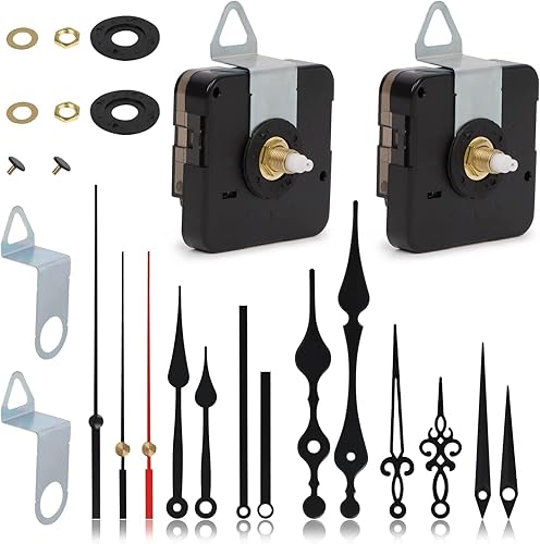2 Pièces Mécanisme d'Horloge, Mécanisme de Mouvement d'Horloge Murale à Quartz avec 5 Paires différentes Horloge Aiguilles, Moteurs et Aiguilles d'Horloge Murale Silencieux DIY Rechange(23mm)