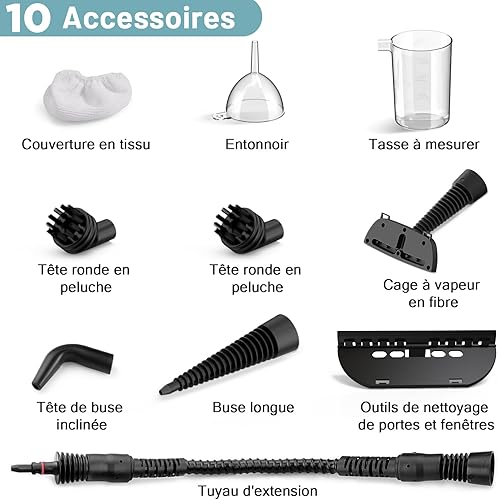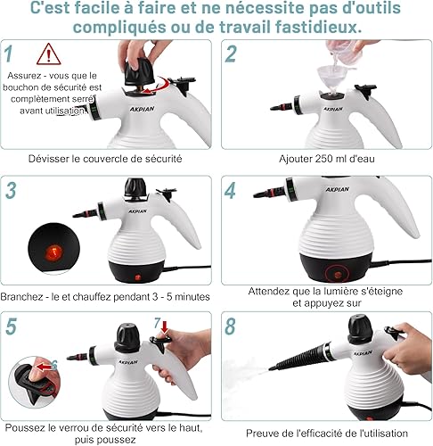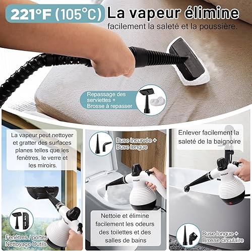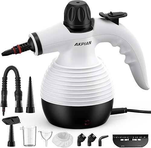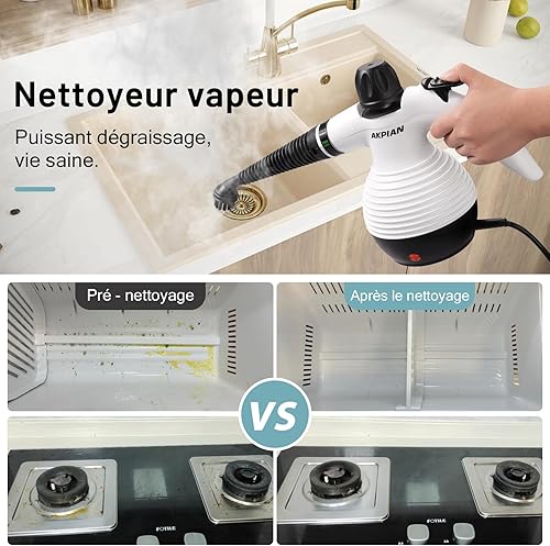 AKPIAN Nettoyeur vapeur à main, nettoyeur vapeur portable, multi-usage, avec serrure de sécurité et kit d'accessoires de 10 pièces pour enlever la saleté, la graisse