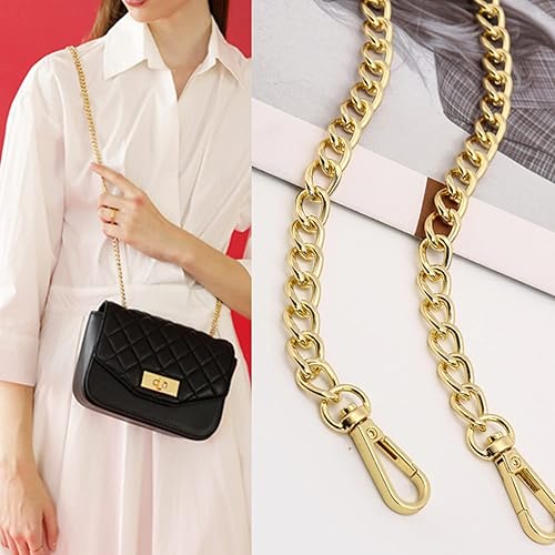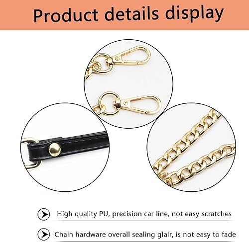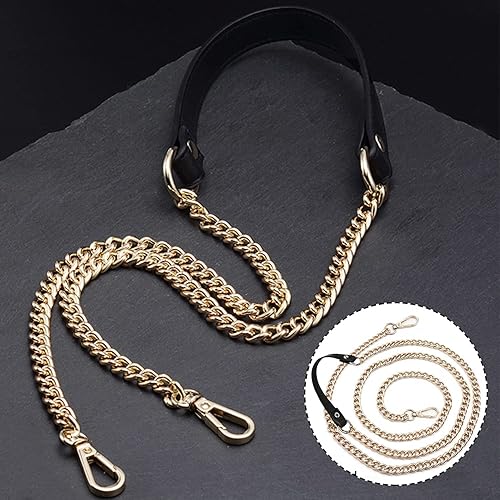 JINXAIN Sangle de Chaîne en Cuir PU 120cm Chaîne de Sac à Main Sangles de Remplacement Le Noir Chaîne de Sangles en Cuir Peut Etre Utilisé pour les Portefeuilles, Sacs à Main, Sacs à Dos(Or)