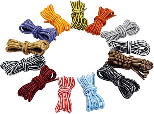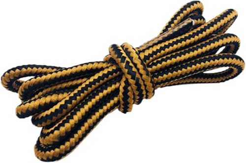 YUBAOLI Lacets Plats, Lacets Ronds Vintage en Polyester tissé à Rayures Bicolores de 0,45 cm for Baskets, Bottes et Chaussures de randonnée(Yellow-Coffee,180cm)
