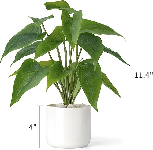 Mkono Plantes artificielles en Pot en céramique de 28 cm pour décoration d'intérieur et d'intérieur avec Pot Blanc Moderne pour Bureau, étagère, décoration de Chambre (Pothos)