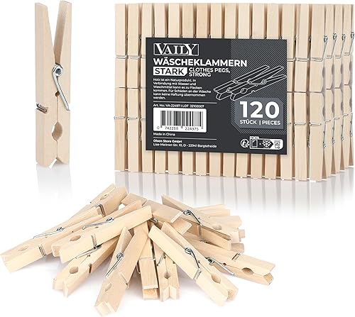 Vaily Pinces à Linge en Bois - Pinces à Linge en Bois pour séchoir à Linge, Corde à Linge, Bricolage et décoration - 120 pièces