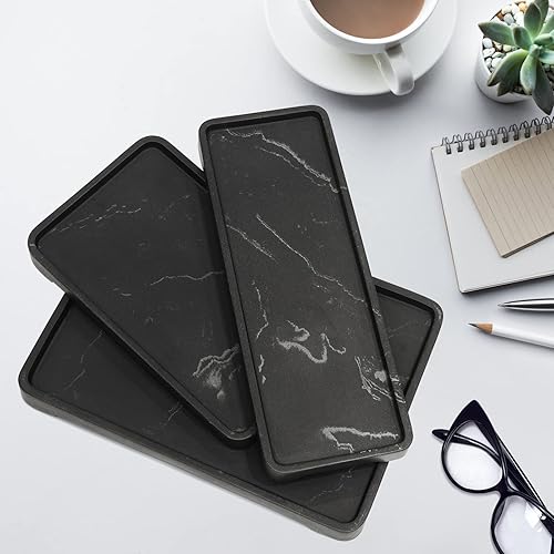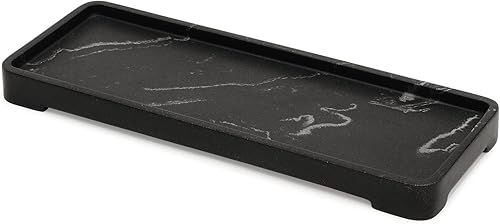 Suanti Organiseur de comptoir pour lavabo de Salle de Bain, Style marbre Noir, Organisateur de comptoir pour Savon, Serviette, Parfum, Plantes, Accessoires de Salle de Bain - Taille S