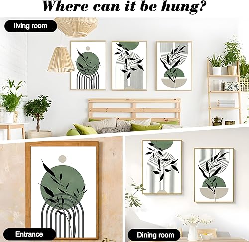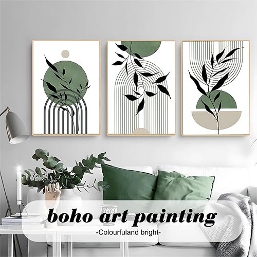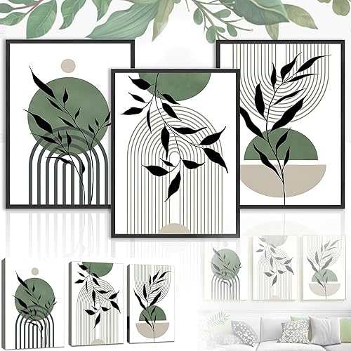 Weploda 3 Pièces Art Mural Boho Vert Sauge, Affiche Décorative Murale Boho Vert Sauge Affiche, Impression Murale Matisse Vert Sauge, Murale Géométrique Abstraite Pour Chambre Salon, 30x40cm,Sans Cadre