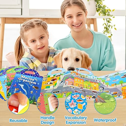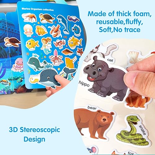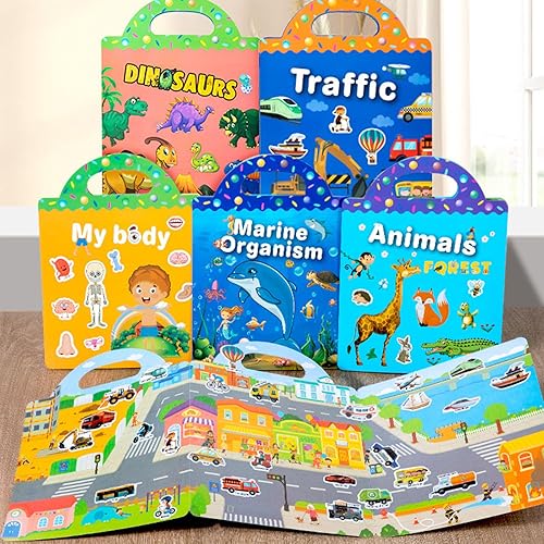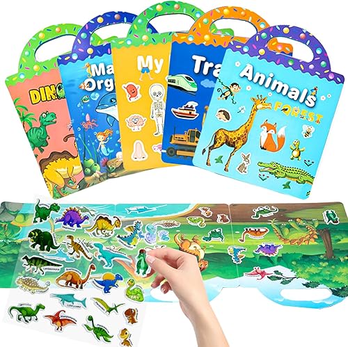 Lot de 5 Livre D'Autocollants 3D RéUtilisables Pour Enfants 131 pcs Gommettes enfants et étanches pour Enfants de 3 à 6 ans Autocollants de Voyage et Jouet éducatif Sensoriel