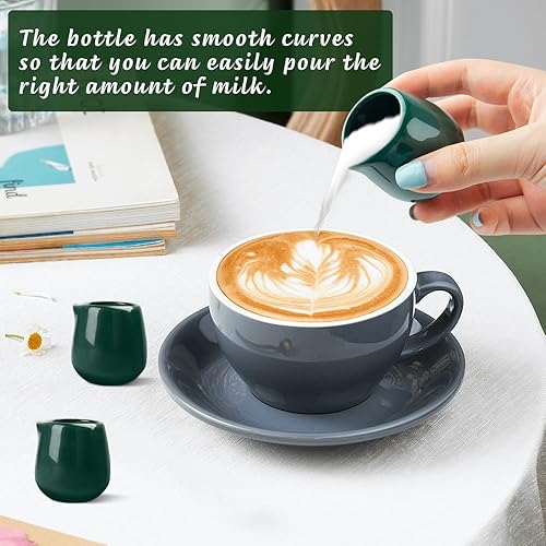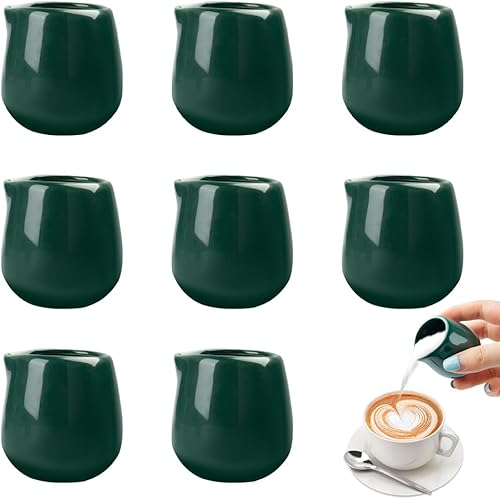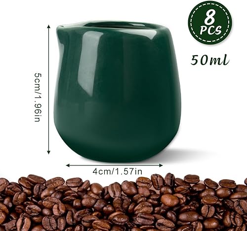 8 Pcs Mini Pot a Lait, XPJBKC 50 ml Verts Pichet a Lait en Porcelaine, Pot à Lait sans Poignée, Petit Pot Sauce Porcelaine Petite Cruche Lait, Pichet Lait Céramique pour Faire Mousser Lait,Café,Sauces