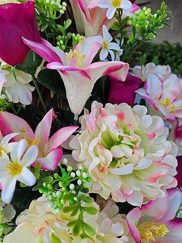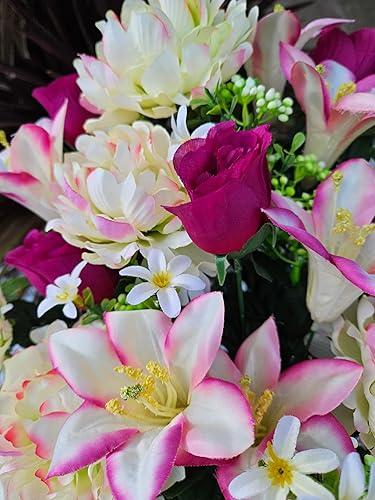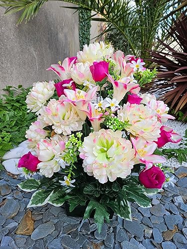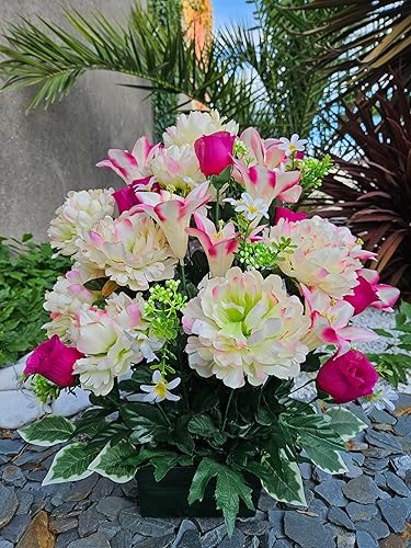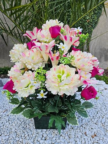Roselynexpress Composition De Fleurs Artificielles Lesté Ciment en Jardinière, pour Cimetière. Réalisé par nos Soins, Fleurs de Qualité.
