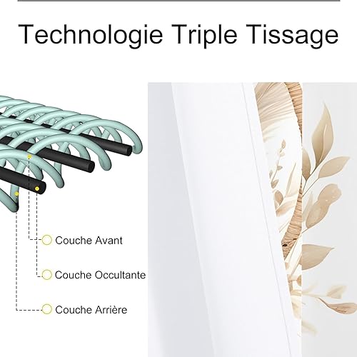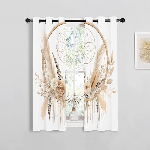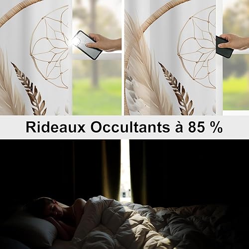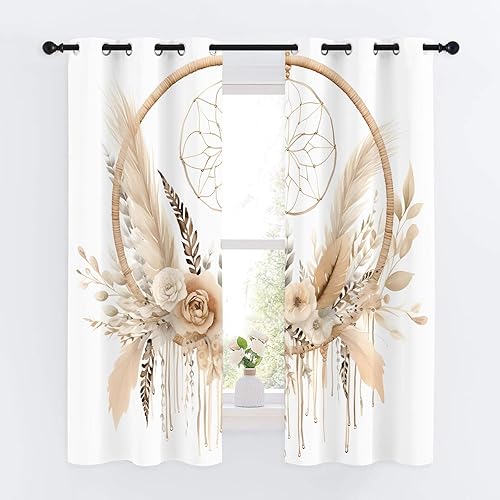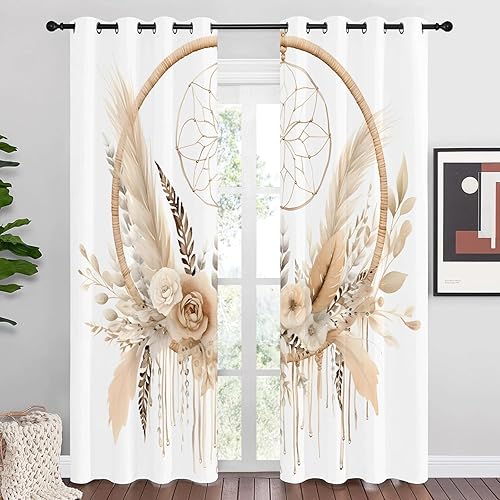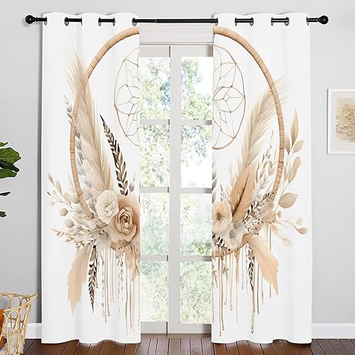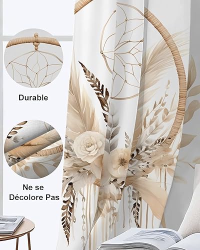Rideau Occultant Motif Fleurs Brunes, Rideaux Blanc Marron 2 Pièces L 100 x H 120, Thermique Anti UV Tenture Opaque à Oeillets Bohême Decoration Chambre Maison Salon Intérieurs, A105