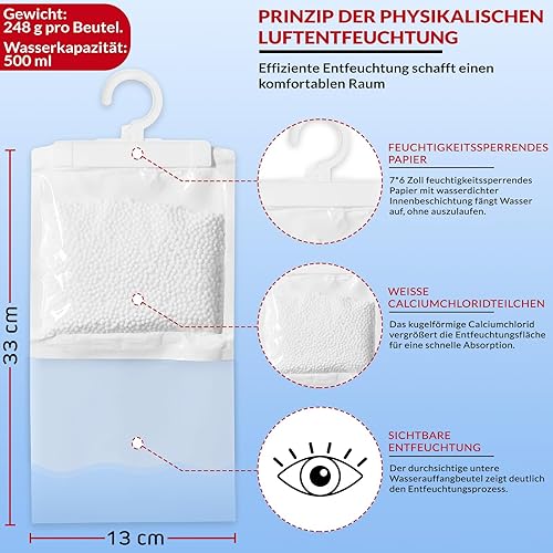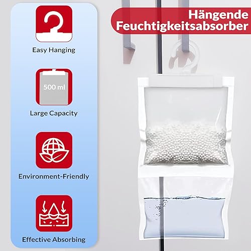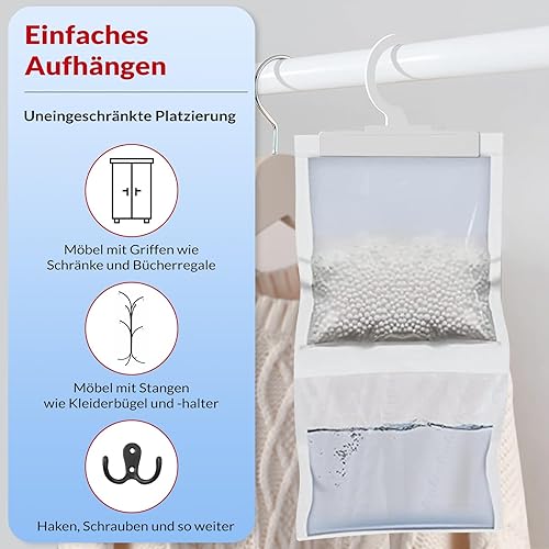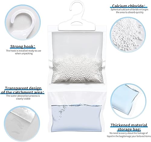 6 sacs déshumidificateurs suspendus pour placard, salle de bain, buanderie, cave, cuisine, caravane, voiture, bus, bateau, garage, grenier