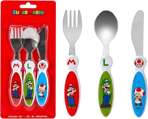 Super Mario Lot de 3 couverts pour enfants avec couteau/fourchette/cuillère