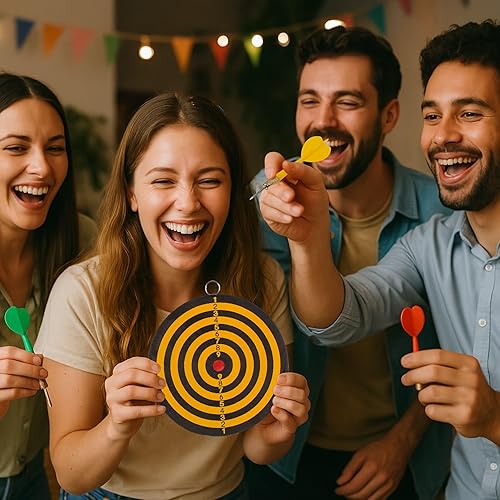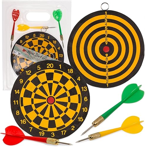 MIJOMA Mini jeu de fléchettes avec 3 fléchettes en métal – Cible en bois double face Ø 15 cm – Jeu de lancer classique pour adolescents et adultes – Intérieur et extérieur