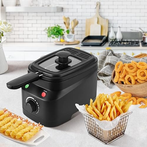 1.5L Mini Friteuse Electrique, Friteuse Electrique pour 1 à 2 Personnes, Petite Friteuse avec Huile