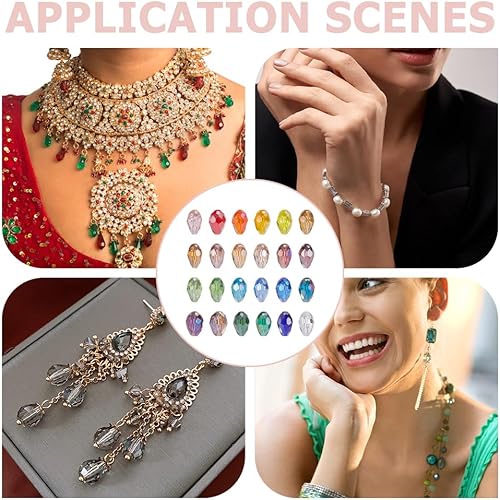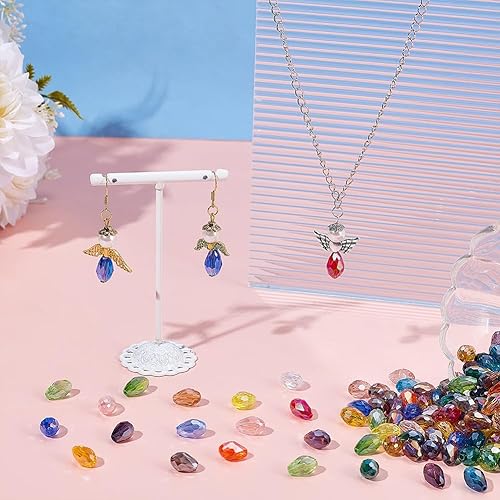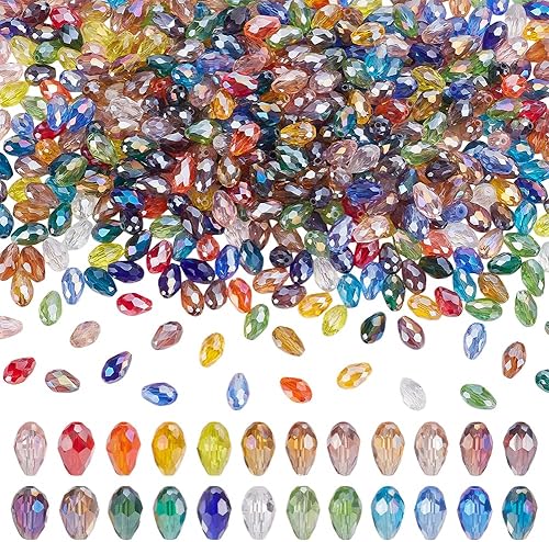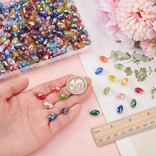 WADORN 480 pièce 24 couleurs Perles de Cristal en Verre de Larme, Perles D'Espacement en Vrac à Trous Verticaux à Facettes Perles de Cristal de Goutte D'Eau de Couleur AB pour Collier Boucle