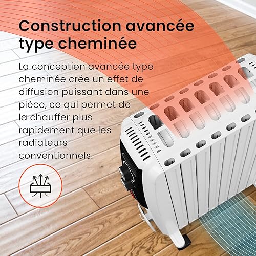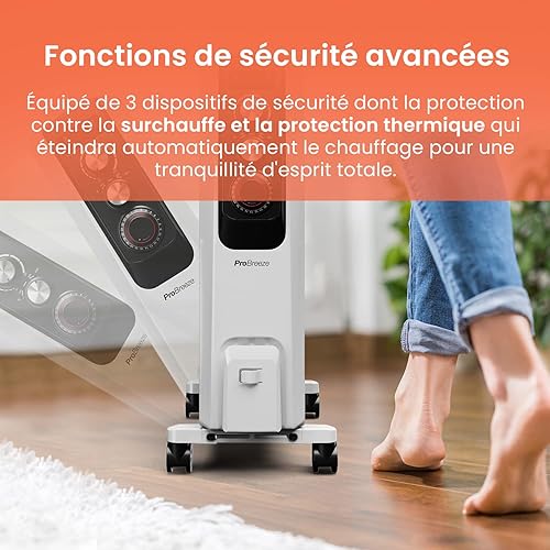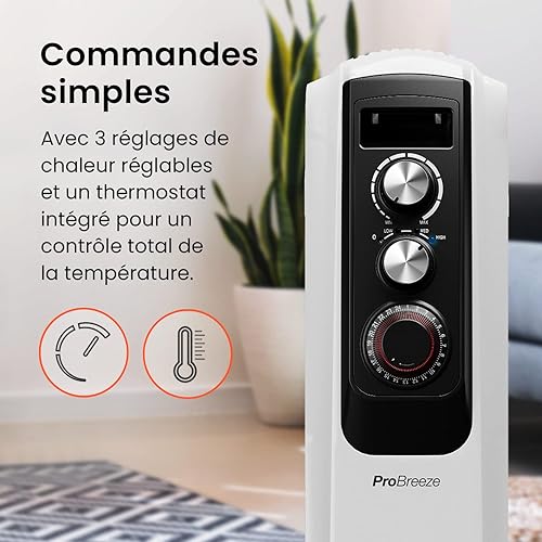 Pro Breeze Radiateur Numérique à Bain d’Huile 2500W, Mobile, Chauffage électrique 10 éléments, Minuteur Intégré, 4 Puissances de Chauffage, Thermostat, Télécommande