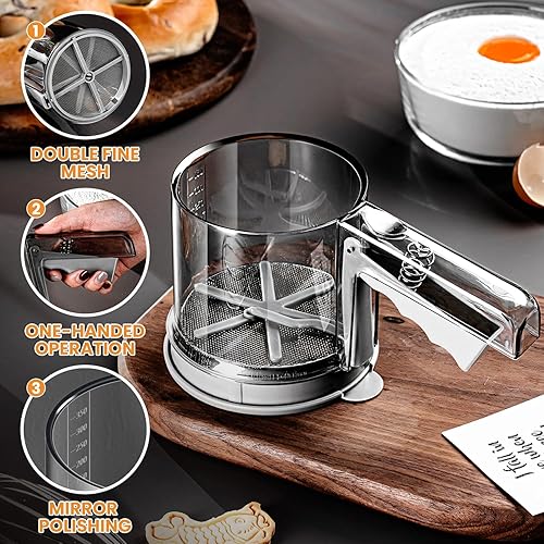 Tamis à Farine 3 Tasses, Tamis à Farine En Polypropylène, Passoire à Farine, Double Sayer En Acier Inoxydable Pour Tamiser Rapidement La Farine, La Farine d'Abricot, La Poudre De Sucre, Tamis