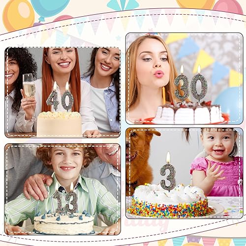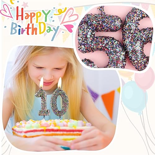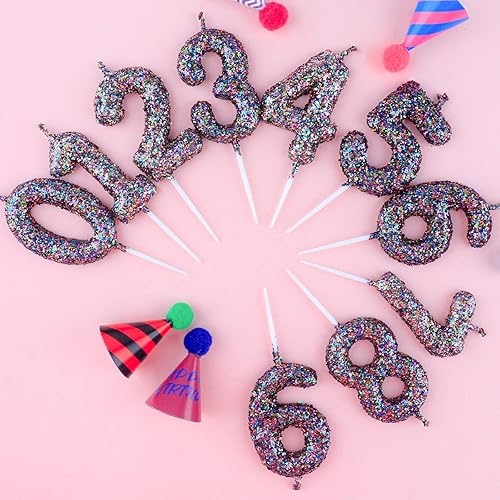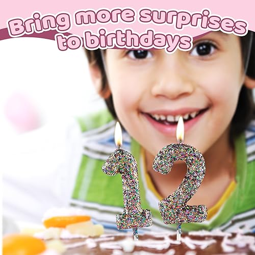 Jolie bougie multicolore à paillettes en forme de chiffre 12 pour décoration de gâteau d'anniversaire pour filles, garçons, femmes, anniversaires de mariage, fournitures de fête