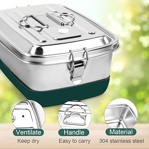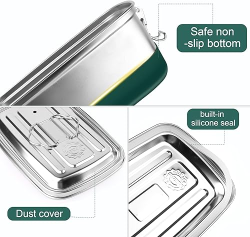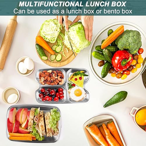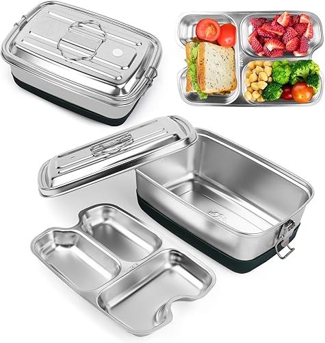 TOSAVGA 2000ml Boîte à Bento en Acier Inoxydable, Lunch Box en Anti Fuite avec Compartiment, BoîTe à Lunch en Portable Box Durable et éCologique pour Bureau, Camping, Ecole, pour Enfants et Adultes