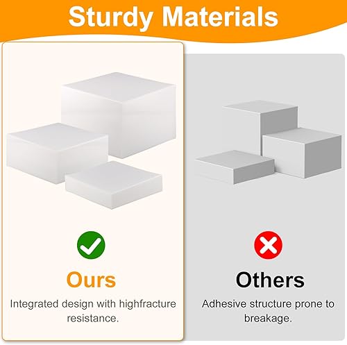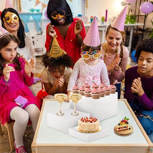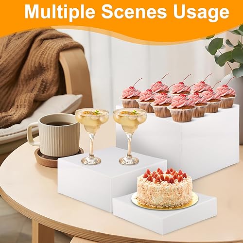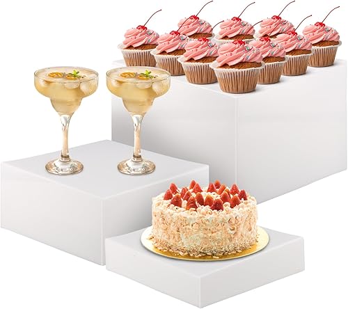 Dokeno 3 Pièces Rehausseurs de Buffet, Présentoirs à Dessert, Présentoirs de Buffet, Support Cubique pour Cupcakes, Bonbons, Bijoux, Figurines, 15 cm, 18 cm, 20 cm, Acrylique, Blanc