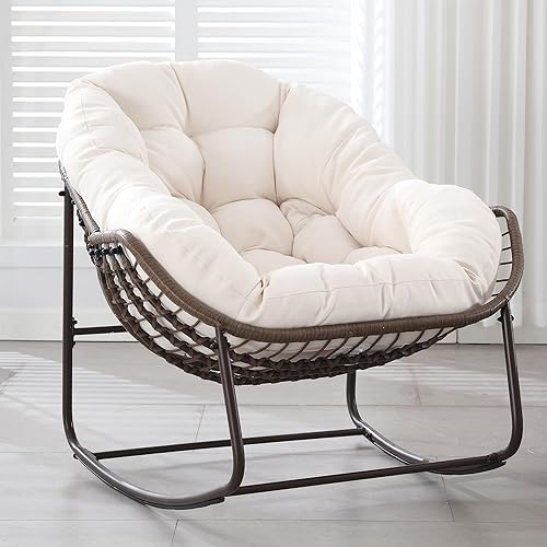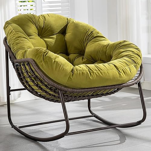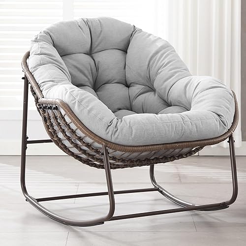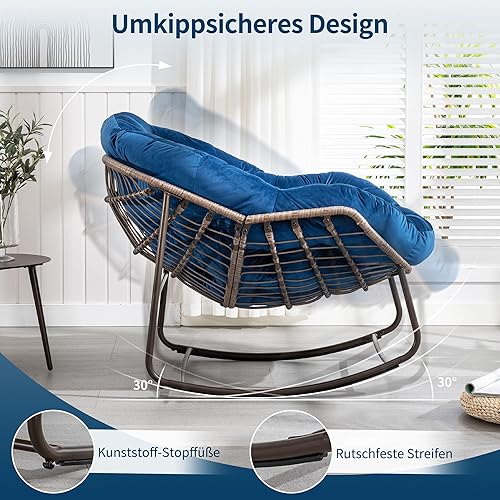 Villeston Fauteuil à Bascule intérieur/extérieur - Fauteuil à Bascule surdimensionné avec Coussin en Peluche rembourré - pour Le Salon, la véranda, Le Jardin, l'arrière-Cour