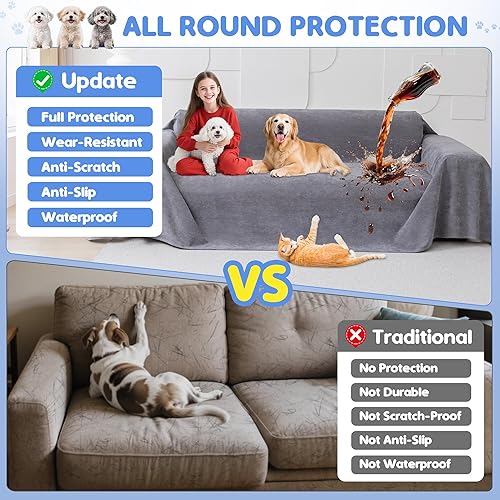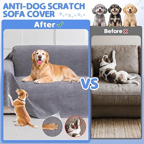 Loiion Grande Protection Canape 3 Places, Protection Canapé Imperméable Animaux, Jete de Canape Grande Taille Antiglisse, Housse de Canapé Anti Poil de Chien, Gris, 380x180cm