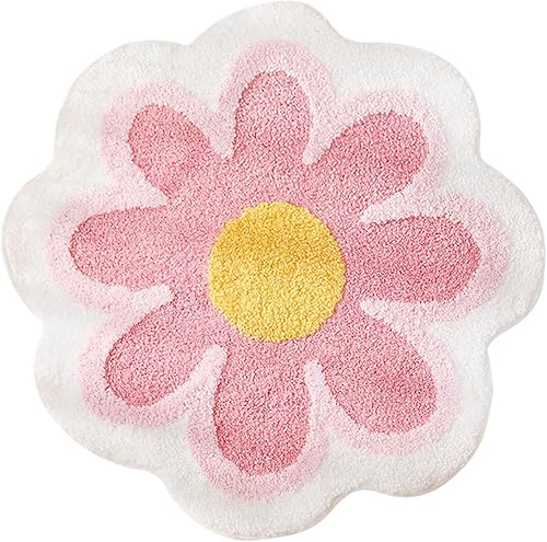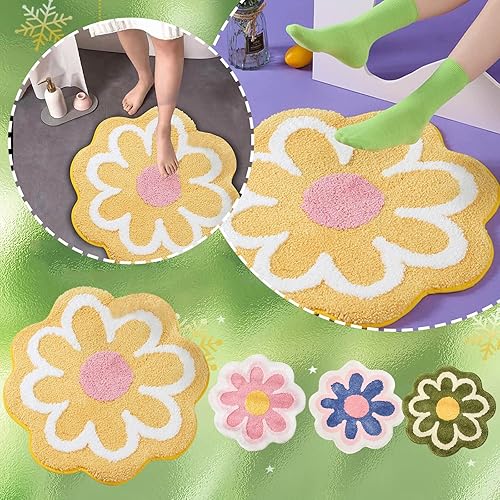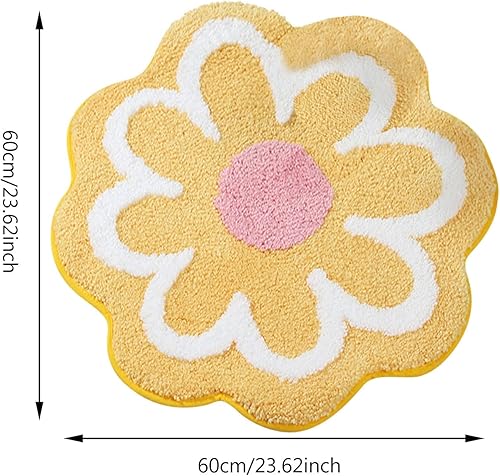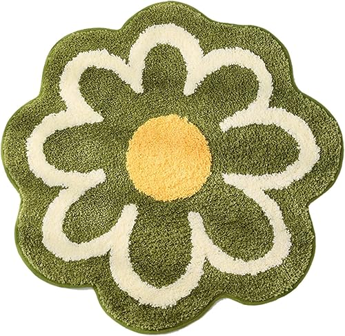 Tapis de salle de bain en forme de fleur, joli tapis de bain rond, super doux et absorbant, cadeau pour chambre à coucher, salon, 60 x 60 cm (vert)