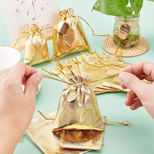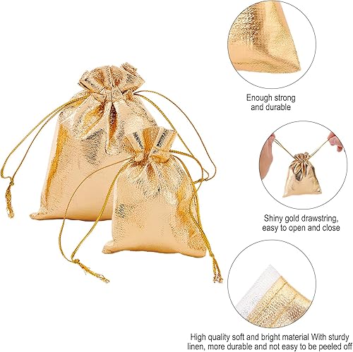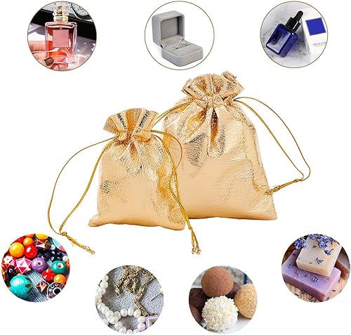 PandaHall 60pcs Sacs Cadeaux Dorés, 12x9cm / 7x9cm Pochettes d'emballage Cadeau Sac Rectangulaire en Organza Sac de Rangement à Cordon pour Bijoux Bonbons Mariage Fête des Mères
