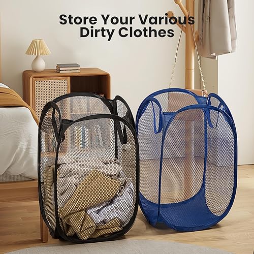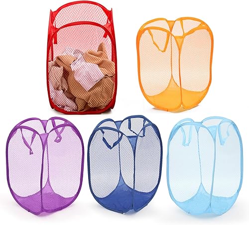 5Pcs Panier a Linge Sale Pliable, grand panier à linge portable, panier à linge pop-up en maille, Panier de Rangement Pour Jouets, panier de nettoyage pour chambre et salle de bain 50 * 30 * 30cm