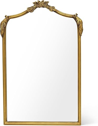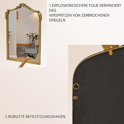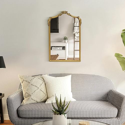 Awhtixbo Miroir mural baroque doré, miroir rétro avec arc rond et bord doré, décoration murale idéale pour le salon et le couloir, dimensions : 40 x 61 cm