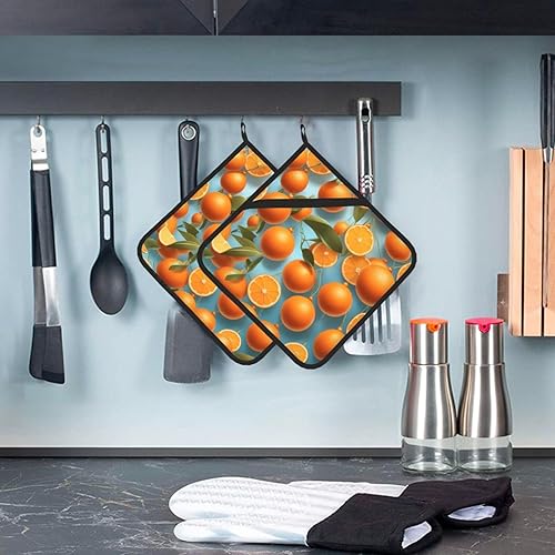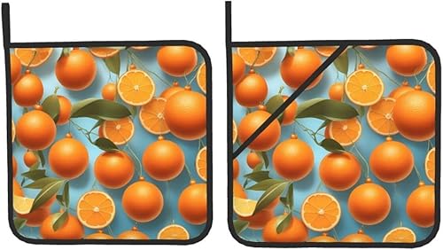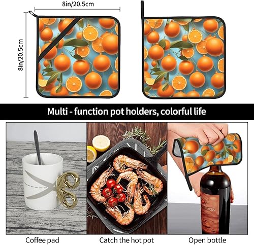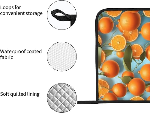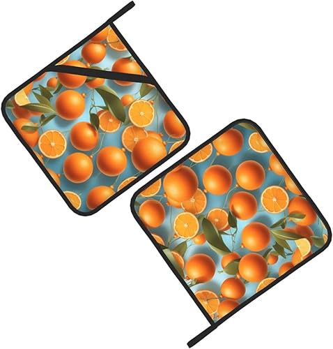 Many Delicious Lot de maniques orange résistantes à la chaleur pour four et barbecue – Accessoires de cuisine avec design carré