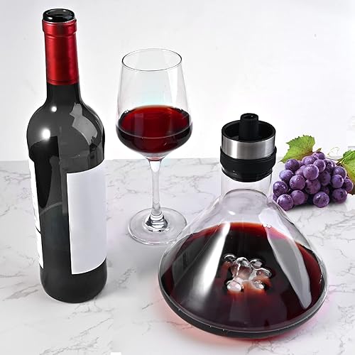 Cieex Carafe Vin Decanteur Carafe à Décanter Vin avec Billes de Nettoyage 2 en 1 Décantation Aération Carafe Vin Cadeau Créatif pour Amateurs de Vin