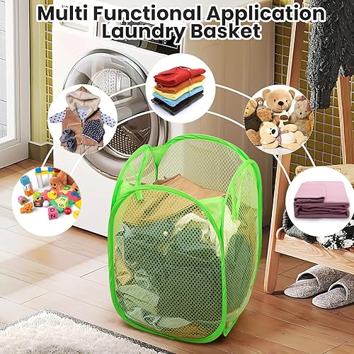 1 Pcs Panier à Linge Pliable, Panier à Linge Pop-up, Panier Pliable de 26 pouces, Sac à Linge Compact et Pratique, Grand Panier à Linge pour Sèche-linge, Portable et Facile à Ranger (vert)