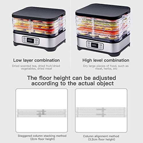 250W Déshydrateur Alimentaire avec 5 Plateaux, LCD Deshydrateur Alimentaire en Acier Inoxydable, 35-70℃, Minuterie de 72 Heures