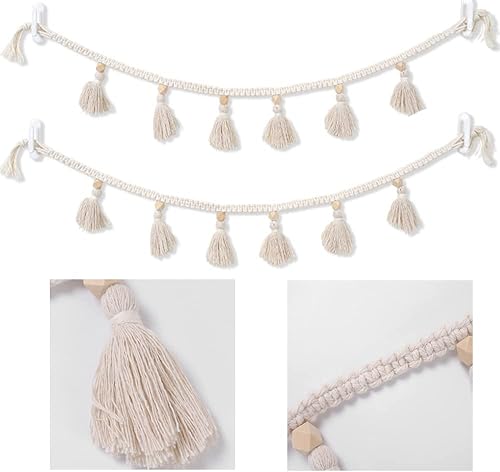 Dtoterul Glands Guirlande Bannière 2 Pièce tapisseries murales Macramé Guirlandes de Pompons Macramé Tissé Tenture Décoration Murale pour Maison pour Appartement Chambre Salon Galerie