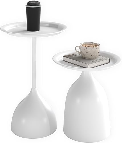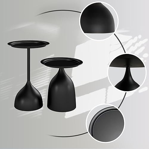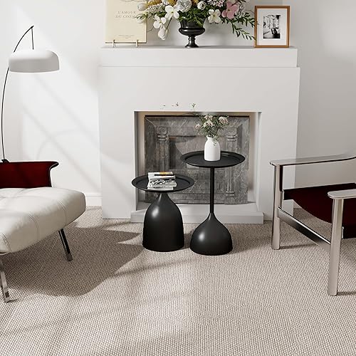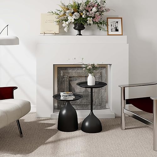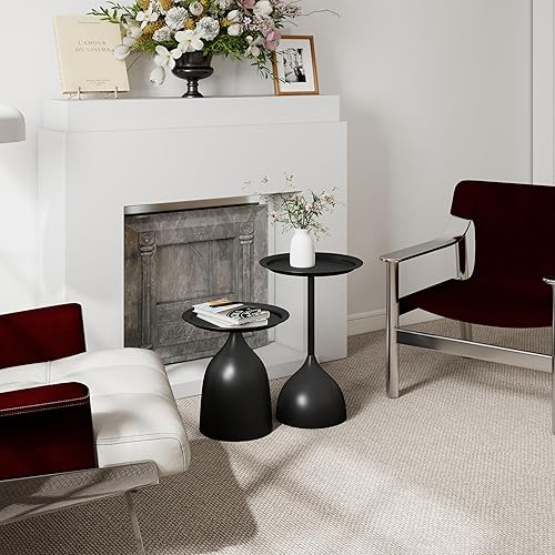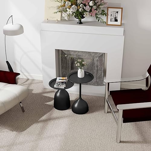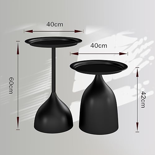 Ginhow Lot de 2 tables basses rondes - Petite table de salon - Design moderne - Table basse en métal noir avec bord de table (diamètre 40 x 60 cm et diamètre 40 x 42 cm)
